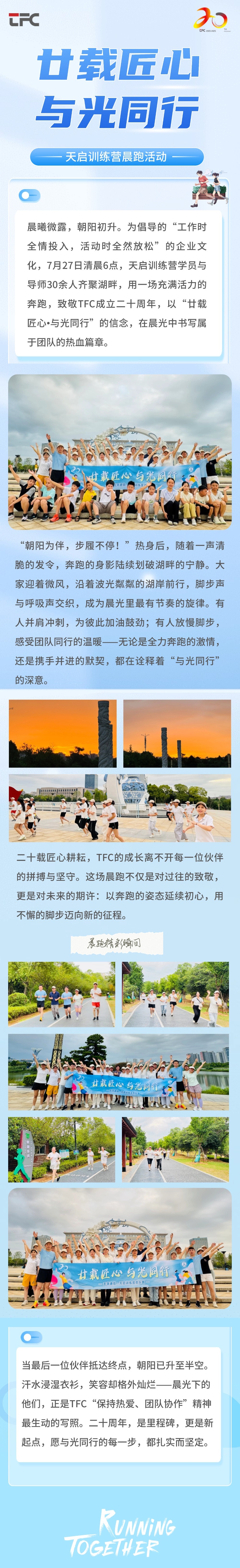 首页 新闻中心 廿载匠心、与光偕行 | 天启训练营瑞阳湖畔晨跑运动